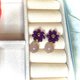 水晶系列 - 紫花与紫罗兰金丝玉圆珠耳环