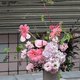 花材: 太阳花、绣球、毛额房藤、钮扣菊、桔梗、火鹤、朱蕉、商露、虹彩木