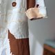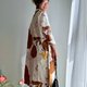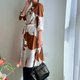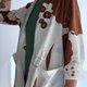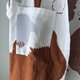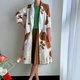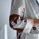 来自伊藤尚美设计的薄棉麻布料,布面是大面积的棕、白、咖啡色块交错,点缀着隐约的花影,带点秋冬氛围的宁静感。