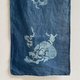经过蓝染后,再使用称为“抜染”的去色技法制作青蛙和髑髅图案。