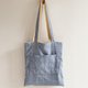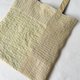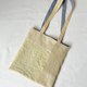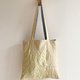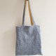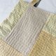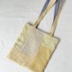 将其拼贴(拼接)后,再以蓝染线绣上刺子,制成亚麻与棉的托特包。
