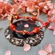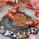 手链的设计融合了赤红色的烧陶珠,这种鲜艳的色彩搭配寓意吉祥、避邪之意。手工编织的过程中,巧妙地运用了手搓棉线与玉线的混搭,使整体的视觉效果更加生动,不仅有古典红色的庄重,还因为黄色与蓝色的细点而增添了活泼感,让佩戴者散发出自信与魅力。