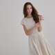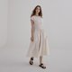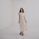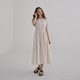 超美的法式复古腰缩褶洋装,利用褶子打造出微微的立体感,经典优雅,颜色虽然是浅色,但却非常显瘦,布面本身有简单的织纹,让整件洋装更显精致!