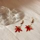 ⛆水晶花饰品 —一叶知秋·耳环— 仅有金线*.。 此款有耳针款与耳夹款 材质☂ UV胶/铜线/黄铜镀14K金耳针、耳夹