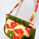 我在灰白色的背景上将扇形图案的和服和棉花结合起来制作了一个小袋。