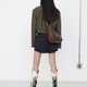 深栗咖色皮革x冷藍色繡線,更復古新奇感;
