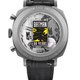 这款“披风骑士”搭载优秀的 SII VK64 机械石英计时运动,灰色表盘和灰色皮革表带,置于轻巧的 40 毫米(不含表冠)钛金属表壳内。其中一个副表盘上印有着名的“蝙蝠侠”徽章。