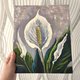 为您的空间注入宁静与优雅,这幅由 Art by Inna Bebrisa 创作的原创油画,描绘了盛开的白鹤芋,拥有柔和的白色佛焰苞和翠绿的叶片。这幅 12x10 英寸的艺术品,运用丰富的厚涂技法与印象派风格,绘于画板之上。空灵的背景以紫罗兰色和蓝色调点缀,增添了深度与宁静感,是为任何渴望平静与美丽空间的完美之选。艺术家亲笔签名。从拉脱维亚全球运送。