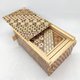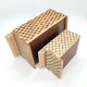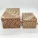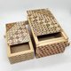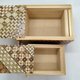 *由于传统的细木拼贴(寄木)图案在每个箱子上都是独一无二的,因此实际商品的样貌可能与照片所示略有不同。天面采用传统细木拼贴,底面则为合板贴上马可贴木(Makore wood)的天然单板。侧边则是以棋盘格状的细木拼贴装饰。