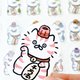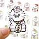材质:贴纸为白底贴纸上雾膜,外盒为白色纸包装盒,每包贴纸以夹链袋包装,一包8张不同图案,内含10包,共80只不同图案的招财猫