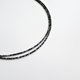 + 雪花石 (Snowflake Obsidian) 圆珠约 2 mm。矿物成分为黑曜石 (二氧化硅),属于火成岩的一种,是火山溶岩迅速冷却后所形成的一种天然玻璃,硬度为 5。