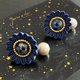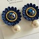 这款耳环以神秘深邃的宇宙为灵感,中心为闪烁如星辰的“宇宙蓝”古董压克力宝石,搭配日本传统“Tsumami-zaiku”技艺制作的花瓣,细致优雅。每一片花瓣皆以手工折叠,使用手染的正绢胴里布料制作,展现高级和风质感与柔和光泽。