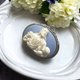 这枚胸针采用了 40 x 30 毫米的树脂浮雕。