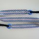 在中南美旅行时深深被织品工艺吸引因而开始学习织带创作,以传统织布原理技法织成,一个小单一图形利用织法变化就能在一长条织带上连续产生几种型态,古老工艺千变万化,图案皆为本人亲自设计制作。