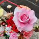 花朵包含玫瑰、满天星、绣球花以及各种干燥配花和叶材,色彩缤纷,层次丰富。