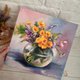 这幅盛开鲜花的油画,呈现在意大利专业画布上,尺寸为 30/30 厘米。此幅花卉画作采用“一次性绘画”技法,厚实的笔触让整幅画作显得生动且具现代感。这幅色彩鲜明的原创画作,描绘着静谧的瓶中花,能为您的居家空间增添一抹亮丽,亦可作为一份令人难忘的赠礼,献给您所珍视的人。