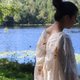 剩余的带子随风飘逸 洒脱浪漫 裙侧开叉