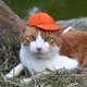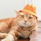 经典怀旧的小橘帽,内含调整带,方便固定在宠物头上,目前有男女两个款式,都很适合毛孩配戴喔!