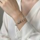 此款为伸缩链,可自由调节喜欢的手围,摇曳的链尾加上天然珍珠的细节,穿戴优雅又方便。