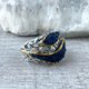 Handmade sterling silver ring with raw blue azurite. Dark blue color stone in high-quality sterling silver. Armenian jewelry for women.