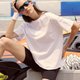 It is deliberately designed with perfect oversized silhouette so it can be easily styled into either sporty or street looks. Just match it with either biker shorts or jeans for an effortlessly chic outfit of the day.