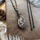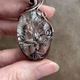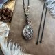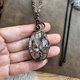 使用拉长石,配以纯铜线,以绕线方式手作而成, 然后再加上复古做旧效果, 再抛光处理令花纹更具深度和对比.