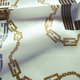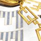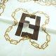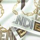 这款意大利制的复古丝巾,采用大胆的缇花设计,风格奢华而富有图纹感。中央饰有醒目的条纹字母标志,并以交织的金色链条图案勾勒,象征着力量与优雅。边缘则以交替的几何图案与字母形式,在金色、海军蓝和棕色调中营造出精致的韵律感。