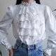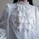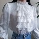 复古白色荷叶边蕾丝衬衫,维多利亚风格荷叶边衬衫,哥特式文艺复兴风格