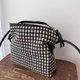 这款毛呢编织面料,大概是由黑色和白色2种颜色的纱线编织而成的,黑白格