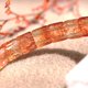 绿色长石中带有赤铁矿,为太阳石的一种,因产于坦桑尼亚阿鲁沙矿区而命名为阿鲁沙,金太阳有如飘花一般洋洒于淡绿色长石中,在阳光中闪闪发亮,每面镯排都像是一幅画。