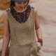 秋香色的人絲面料垂墜如黃昏時分的薄霧,溫柔沉靜,卻因背帶設計而多了幾分利落的帥氣。