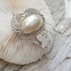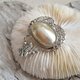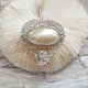 **日本中古二手珠宝首饰 银色巨型贝壳色珍珠胸针心口针 **