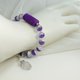 天然紫云母回纹雕刻桶珠 紫白分明紫水晶 白水晶原矿 银饰手链