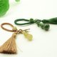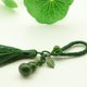 天然和田玉碧玉与细麻糖分别雕刻的葫芦制作的挂饰葫芦,自古就有“福禄”之意,以葫芦做配饰,也有招财纳福,祛病消灾,子孙兴旺,吉祥如意,百年好合,和气扶正,化解煞气,聚气聚财的作用。两款葫芦料子冰润油滑,雕刻件古朴雅致,细麻糖浅色,由细麻糖的分布紧致与稀疏形成颜色的渐变深浅,料子干净细腻,光滑度高。碧玉为深菠菜色,有较多小黑点,不过因为色深点小,要凑近细看才容易分辨。搭配同色系和田玉圆珠,手工流苏与手工制作树叶,有一夜暴富,一夜成名之意。可做吊饰,包挂,压襟等。