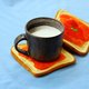 休日、朝のごちそう。いちごのジャムトーストのコースターです。