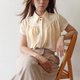 特别的奶油色衬衫,领口的小包扣搭配暗门襟的设计,