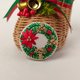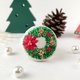 这是一枚饰有鲜红一品红的圣诞花圈刺绣胸针。
