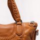 包身采双面设计,皮革接缝出几何弧形线条,显得细致有品味,点缀雅致的皮编饰纹,和提把上象征新生、丰盛、幸运的麦穗图腾,系住握在手心中的祝福寓意。