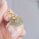 •冰胶黄加绿双彩飘花扣甜甜圈,立体精致三叶草扣头很时尚,完全不老气,实物整体很高级、贵气,还赠纯银链、附证书