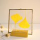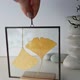 兩片玻璃板之間漂浮的銀杏葉營造出神奇的輕盈和通風。 所有的花草綠植都是我自己採集、壓榨、框起來的。 我只使用具有抗性顏料的植物。 這就是為什麼我的植物標本館會長時間保持活力的原因。