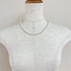这款为本店原创色彩的日制贝珍珠项链,使用贝壳作为素材,并在原珠上层层叠加涂上原创色彩的珍珠涂料。采用直径约 5.5mm 及约 3mm 的贝壳小珍珠设计,全长约 45cm,是比标准公主型长度稍长一些的尺寸。无论正式场合或日常穿搭皆适宜。珍珠色泽为带有细致质感与柔和光泽的浅米白色调。