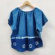 圆领,前方有领结绳短袖靛蓝扎染衬衫。可爱的设计,凉爽的靛蓝染色图案。宽松舒适,适合日常穿着。棉质织物柔软且易于熨烫。