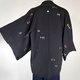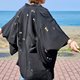 这款复古日式羽织外套以深黑色为底,饰以精致的金、银、柔粉色金属丝刺绣。