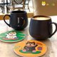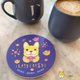 以黑白猫星人为主题的招财吸水杯垫,鲜艳色彩描绘出生活中的无限可能。