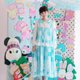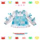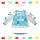 领设计更显可爱,撞色白色暗纹布料,蓝色花花扣子,下摆也有呼应的荷叶边设计,单穿也一样好看。 袖子上有蝴蝶结绑带设计,增加可爱感觉,袖口也呼应领子和衣身,后背也呼应前身的领口设计,花边为像水波纹的花边。