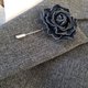 胸针男士翻领别针深蓝色玫瑰皮革胸花,男士首饰