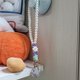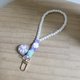 佩宁手作│珍珠挂绳。猫掌羊毛毡--白紫│手机绳。手腕绳
