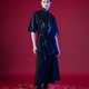 服装版型较以往品牌经典款的长版衬衫不同,以正式衬衫的视觉轮廓为基底,设计上将前襟与和服版型互相结合,延伸出宛如和服般左领右衽的交叠层次,袖子也沿用和服式宽袖来做设计;特意将左领延伸出的份量比右领多,并在左领设置可抽皱抽绳与扣洞,右领延伸出一条绑带,将左领抽绳抽皱绑至右领绑带后,让原本在于正中间的正开门襟偏移至右侧;松开绑带后,把左领扣至右身片上,将原本为左领的份量变形成,像似由前片延伸出的一块不规则挡片,在正面视觉呈现出同心圆的挡片结构;解开扣子后则能让门襟回到正中间,让领子自然垂放于胸前;左身片腰间设置的可抽皱绑带,能依照喜好调整皱折并绑置右侧身片;是一款能随着穿搭任意变形的衬衫。