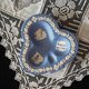 蓝色梅花形设计, 碟面分别以三组白色古典人物浮雕装饰