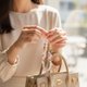 ・粉雾色系搭配金色细节,温柔中带质感